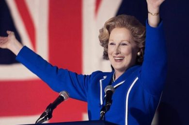 これは映画サッチャー鉄の女の画像ですが、高市新総裁も同じ青のスーツですね。意識されたのかな?