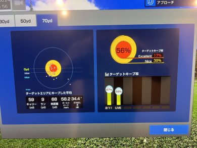 70ヤード これもまずます 17%は寄せワン 56%は2回に1回寄せワン たぶん…いやそれは言い過ぎだ。